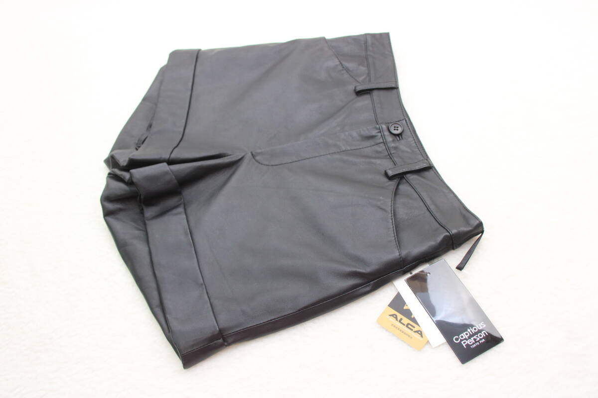 Product name: 5395 新品タグ付き 高級羊革レザーロールアップショートパンツ ブラック11号 定価¥26,000+税