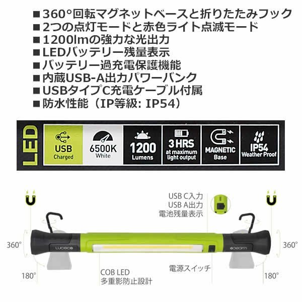 Product name: ○未開封 Luceco USB充電式 LEDワークライト 1200lm LILW120U65UC 【動作保証】LEDライト 作業灯 夜間作業 アウトドア 照明