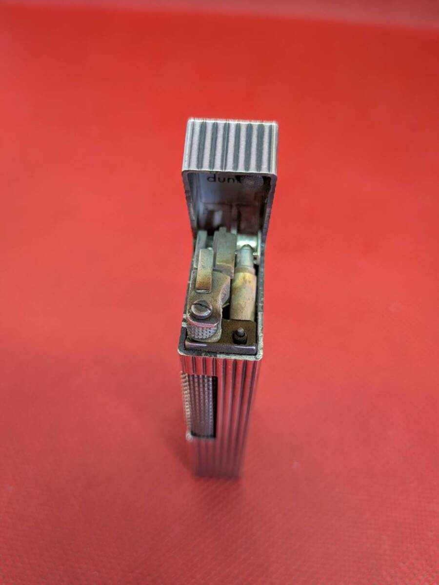dunhill ダンヒル 縦縞 ストライプ シルバー ガスライター ローラー式 中古 50269 着火 火花確認済 swiss made 銀色