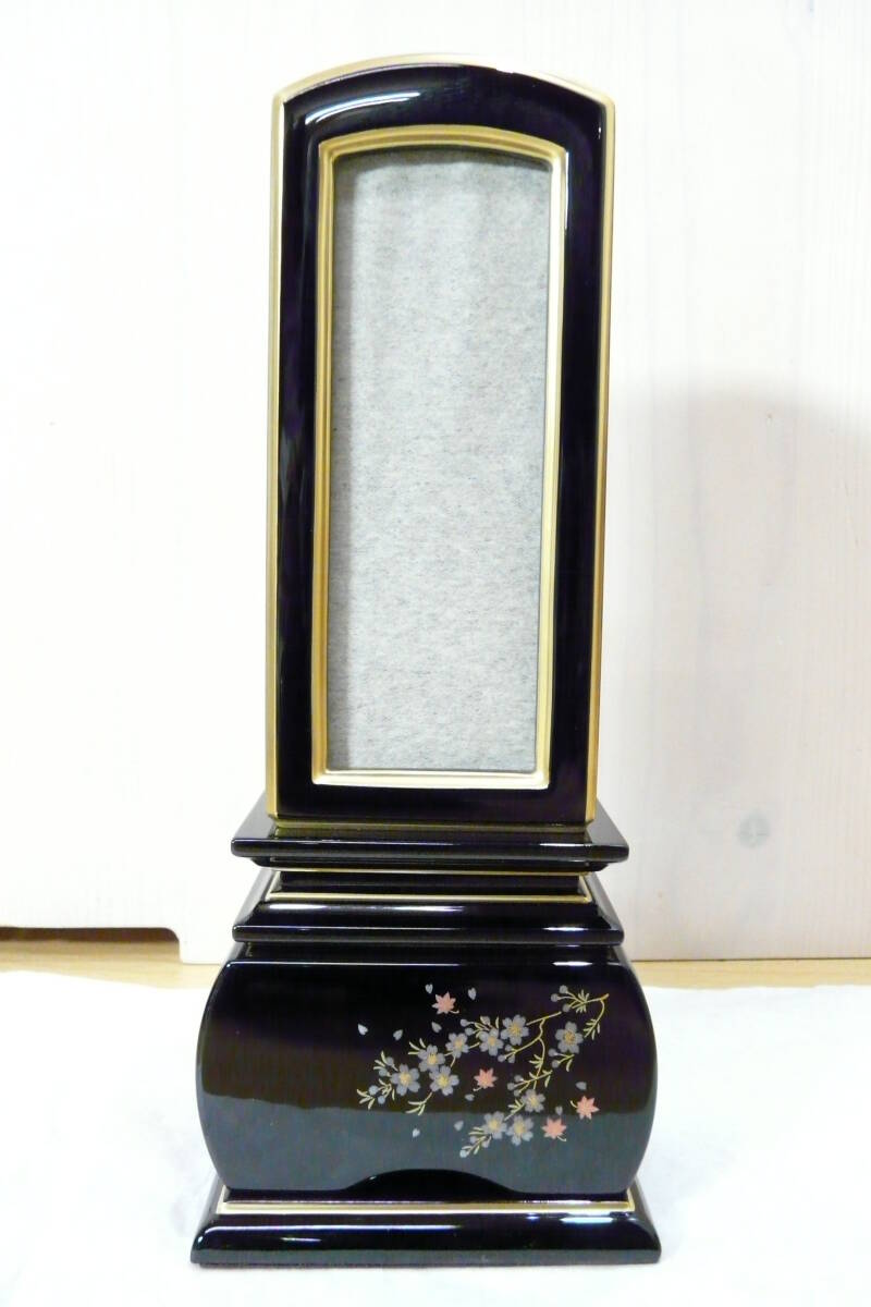 ・木地に塗を施し、縁に金、台座に桜の蒔絵を施した高級塗回出(繰出)位牌です。