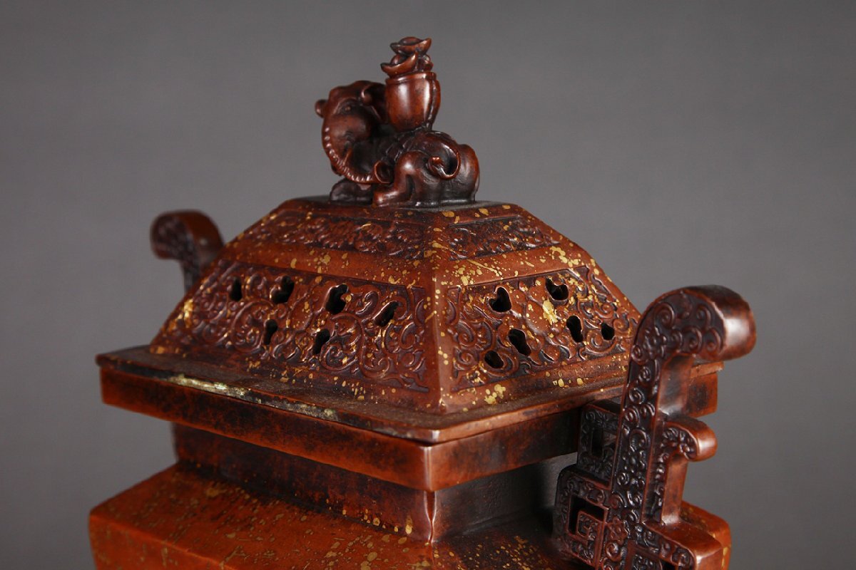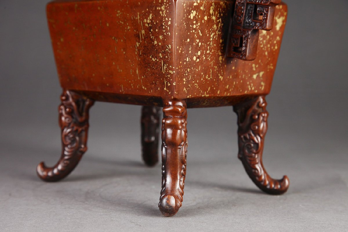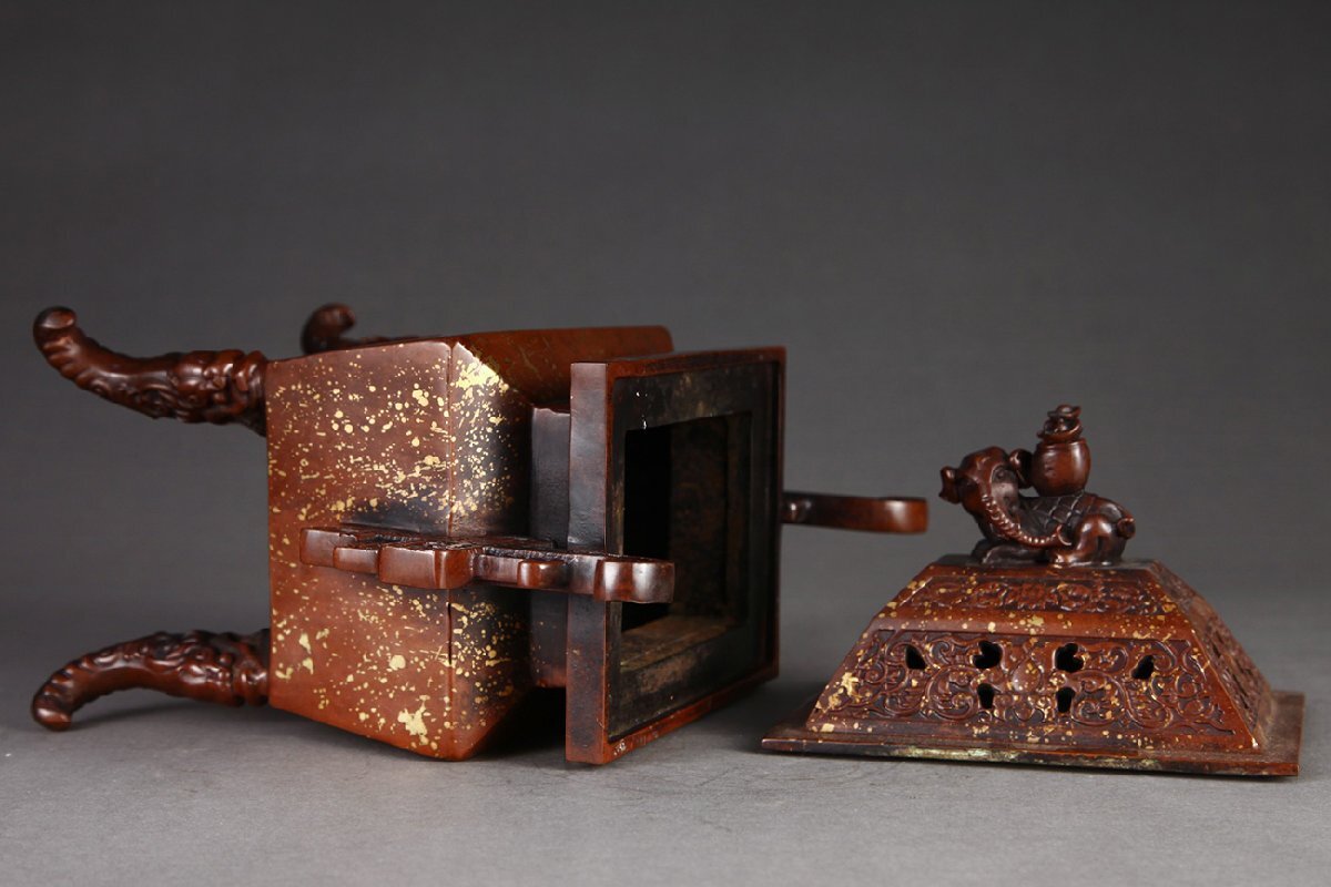 Product name: 【安】明時代 大明宣徳年製 銅胎 点金灑金四方戟耳香薫炉 極細工 古置物 古擺件 中国古美術 時代物 古董品 374