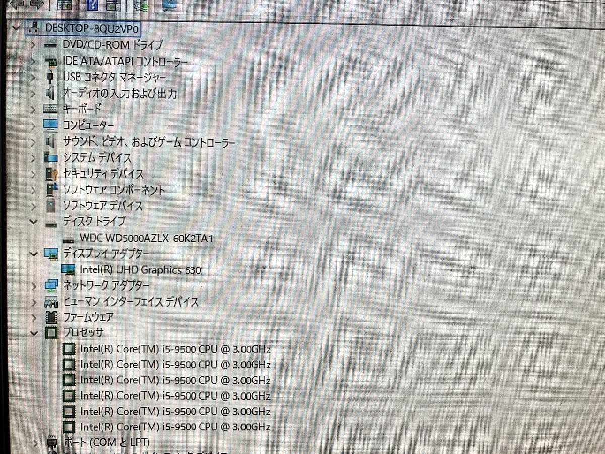 CPU Intel(R) Core(TM) i5-9500 CPU @ 3.00GHz 3.00 GHz