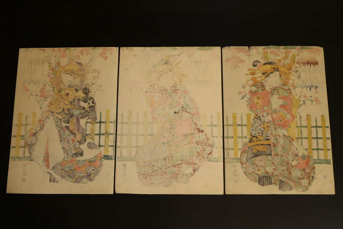Product name: T397 木版画3枚 豊国 花魁 錦絵 浮世絵 絵紙 アンティーク 古道具