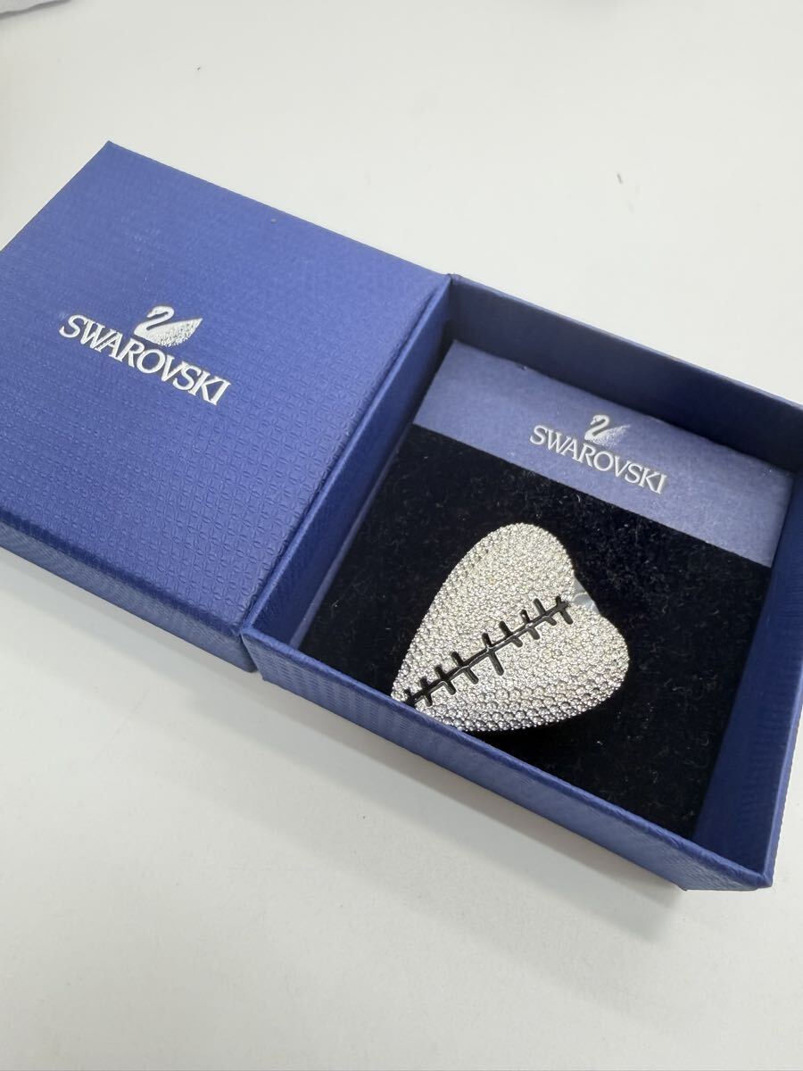 【極美品】SWAROVSKI スワロフスキー ハート ブローチ ラインストーン シルバー×ブラック ステッチモチーフ 箱付き 現状品 プレミアム