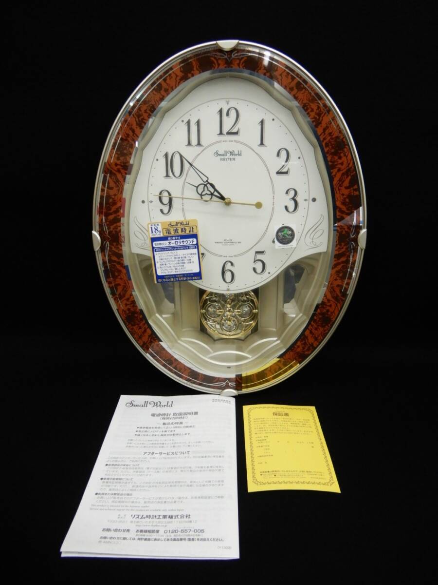 ★SmallWorld 4MN520RH23 木目仕上(白)輸送箱付★電波時計/リズム時計/動作確認済み/消費税0円