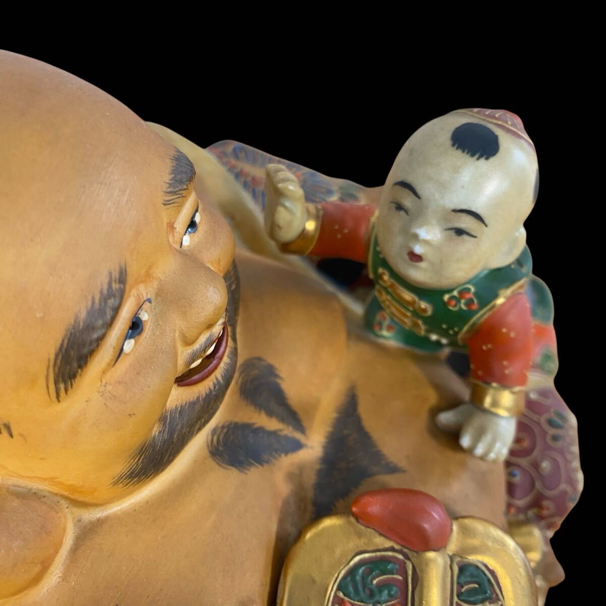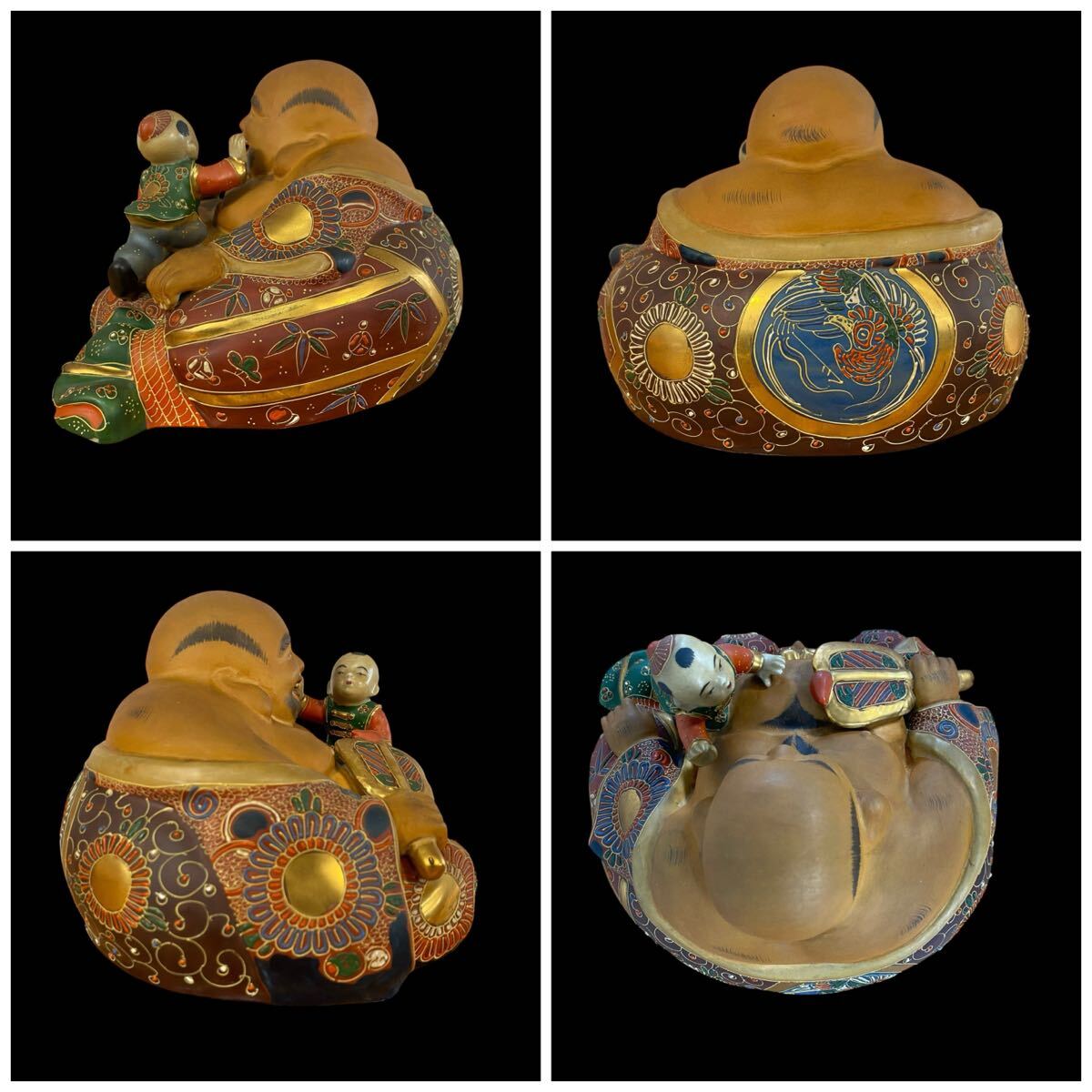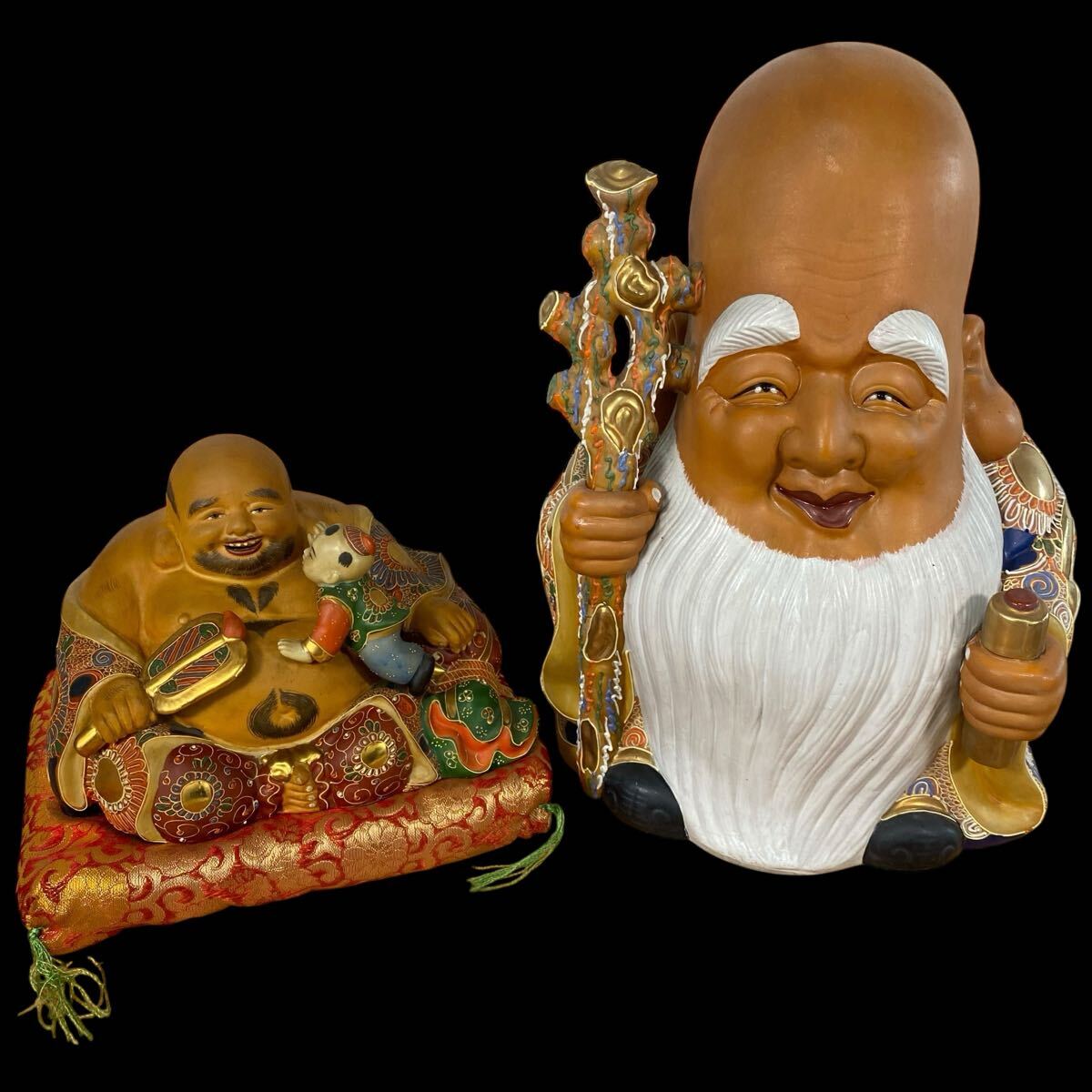 Product name: ★ 九谷焼 福禄寿 布袋 2体 七福神 金彩色絵 陶器 置物 縁起物 骨董 古美術品