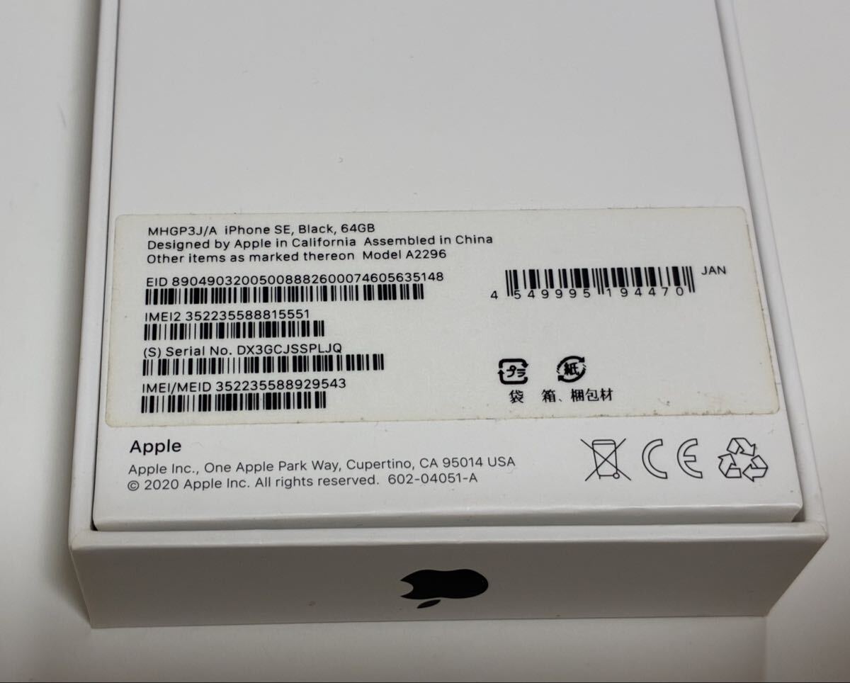 ◯機種 : iPhoneSE 64GB (第2世代) A2296 MHGP3J/A