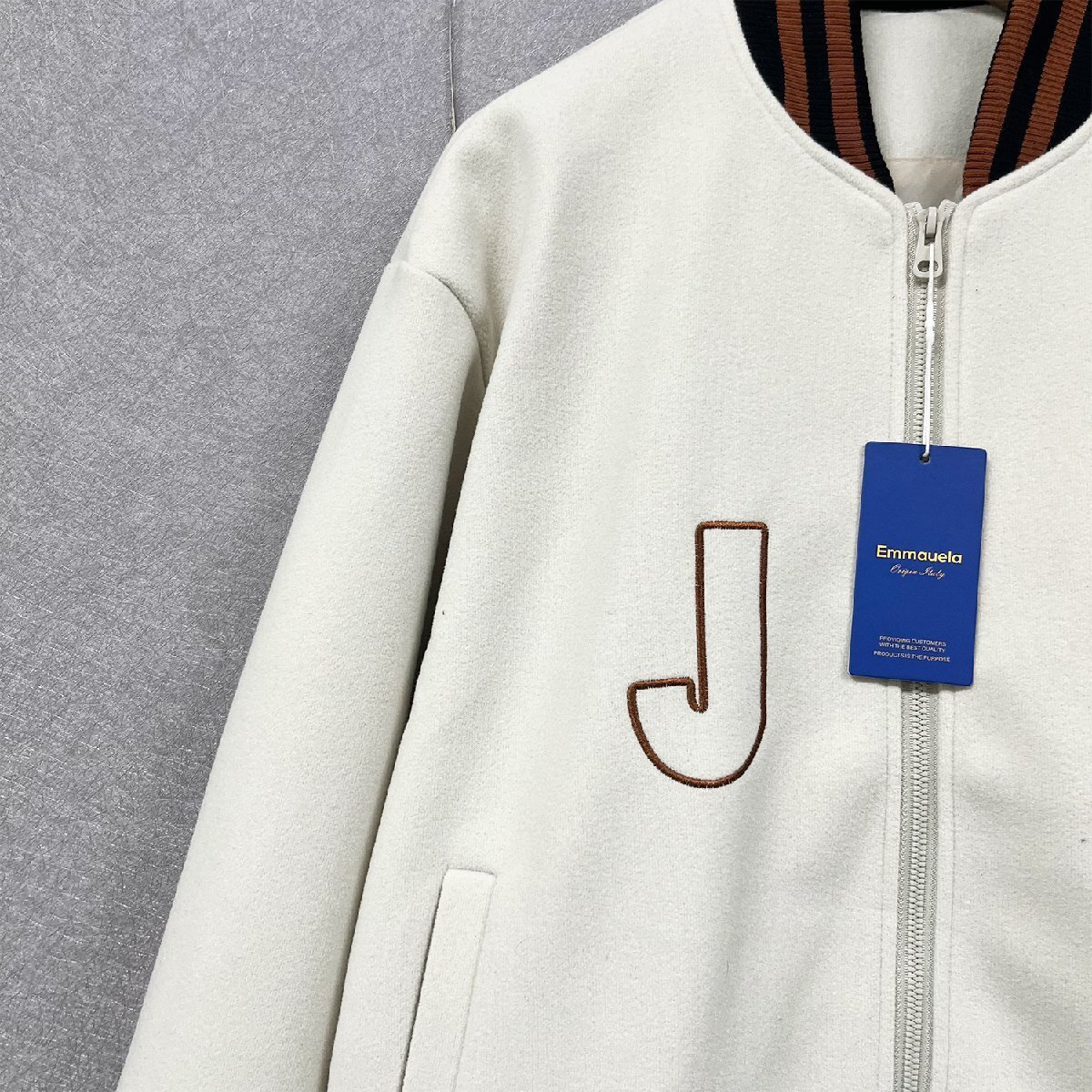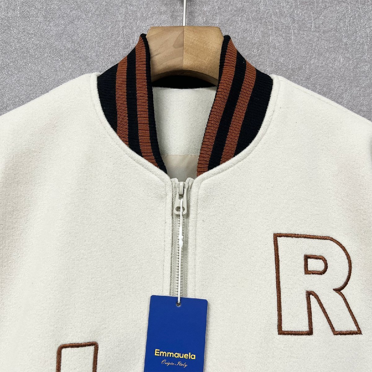 Product name: 個性・スタジャン 定価7万◆Emmauela・イタリア・ミラノ発◆カシミア100% ソフト 保温 英字刺繍 ブルゾン カジュアル アメカジ 普段着 M/46