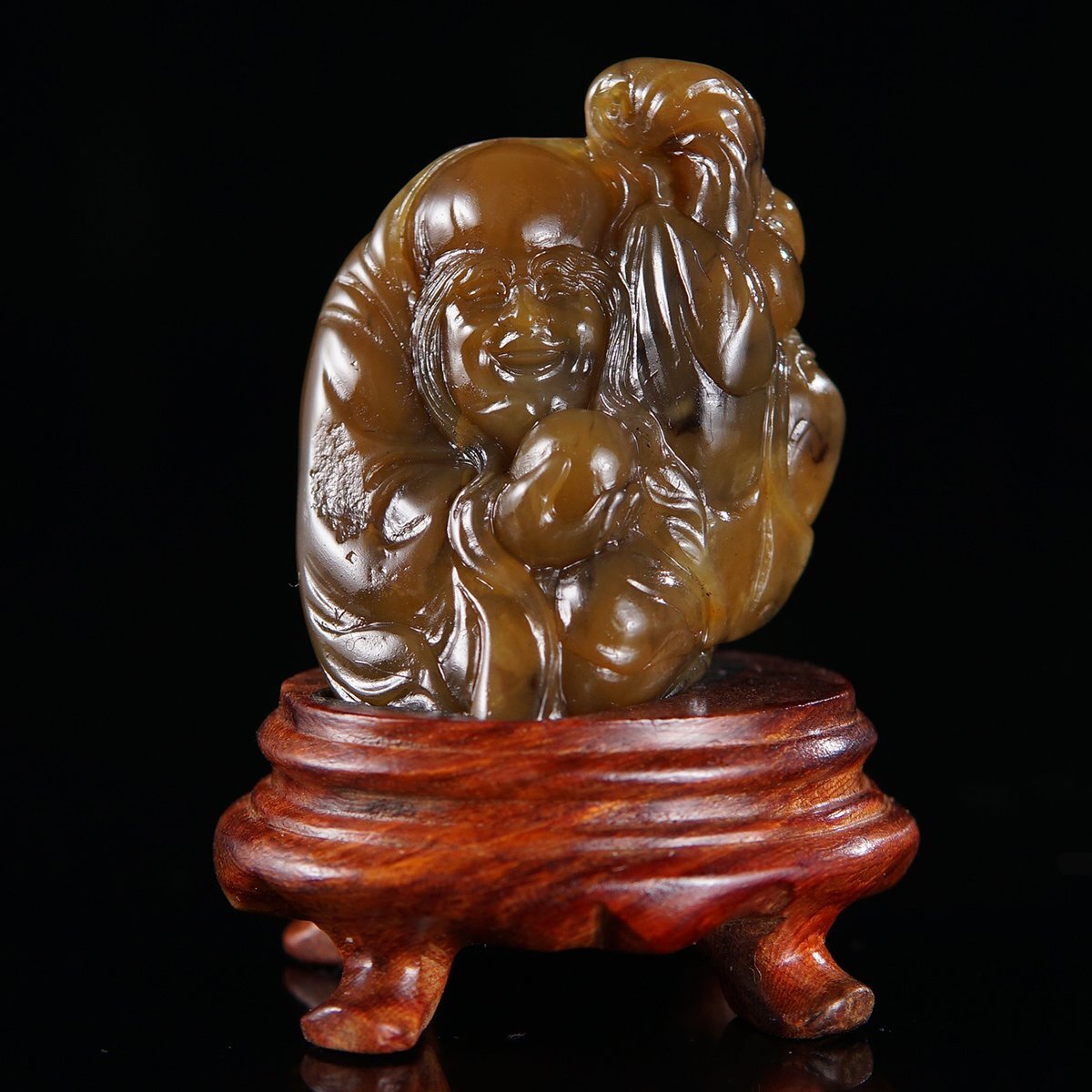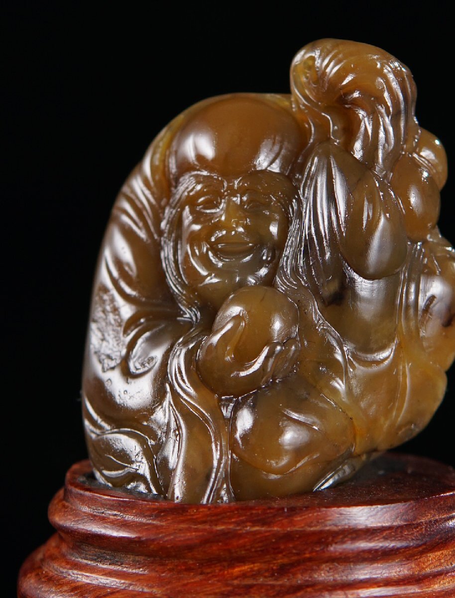 Product name: 【安】金石篆刻 寿山灰田石彫 長眉羅漢置物 台座付き 極細工 古擺件 中国古美術 時代物 290