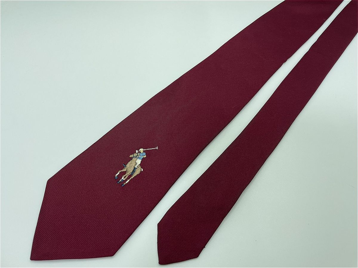 【美品】Ralph Lauren ラルフローレン 乗馬柄 ネクタイ 3本以上 送料無料 メンズ ワインレッド 0903025