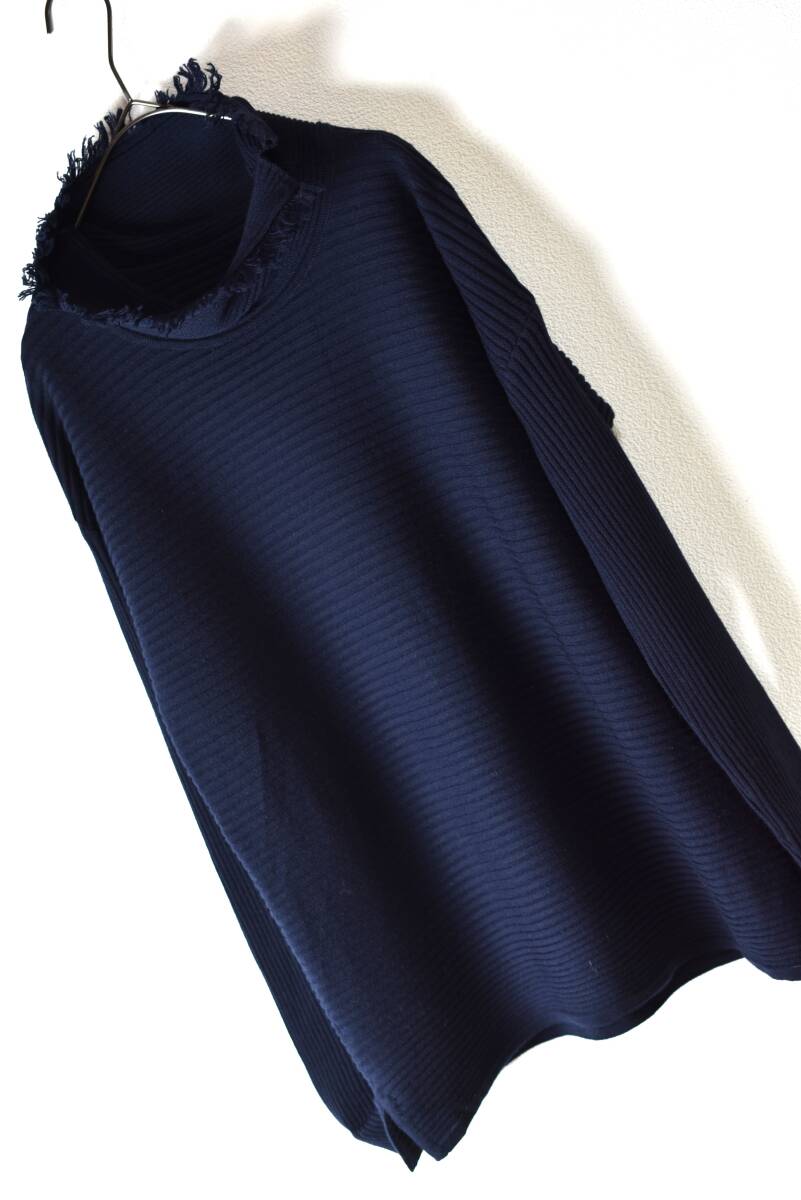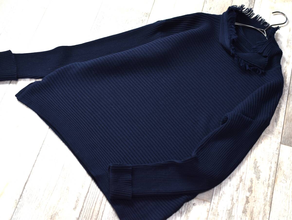 Product name: レリアン Leilian フリンジ付きリブ織りタートルネックウールニットセーター 紺色 サイズ11