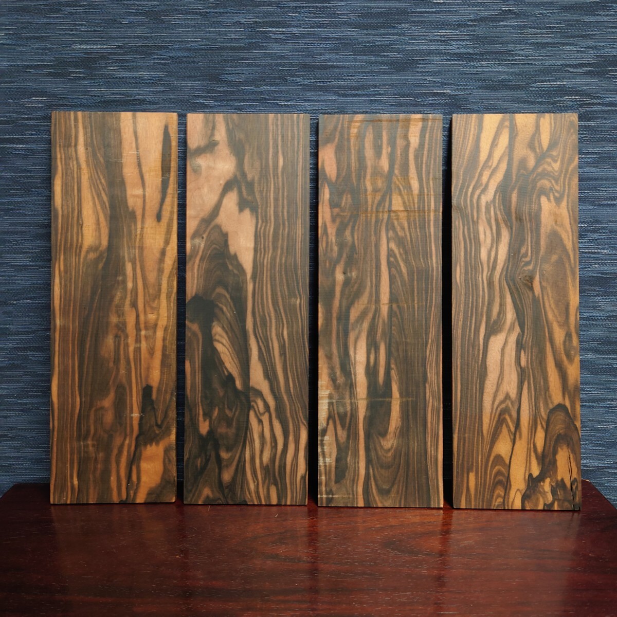 【黒檀板 4枚 約377mm×119mm×6mm】未塗装 縞黒檀 エボニー 端材 DIY ハンドメイド 木工