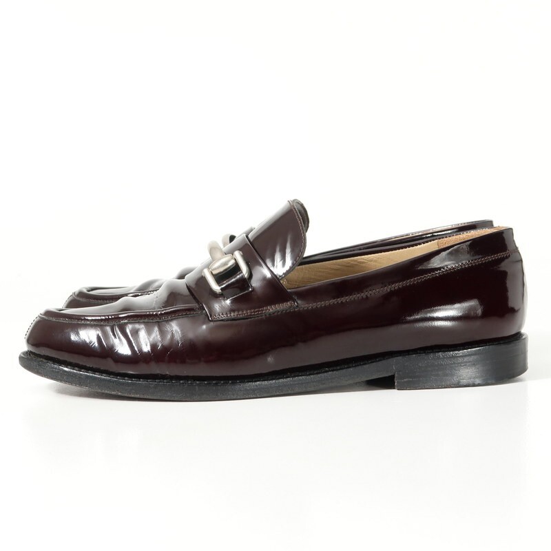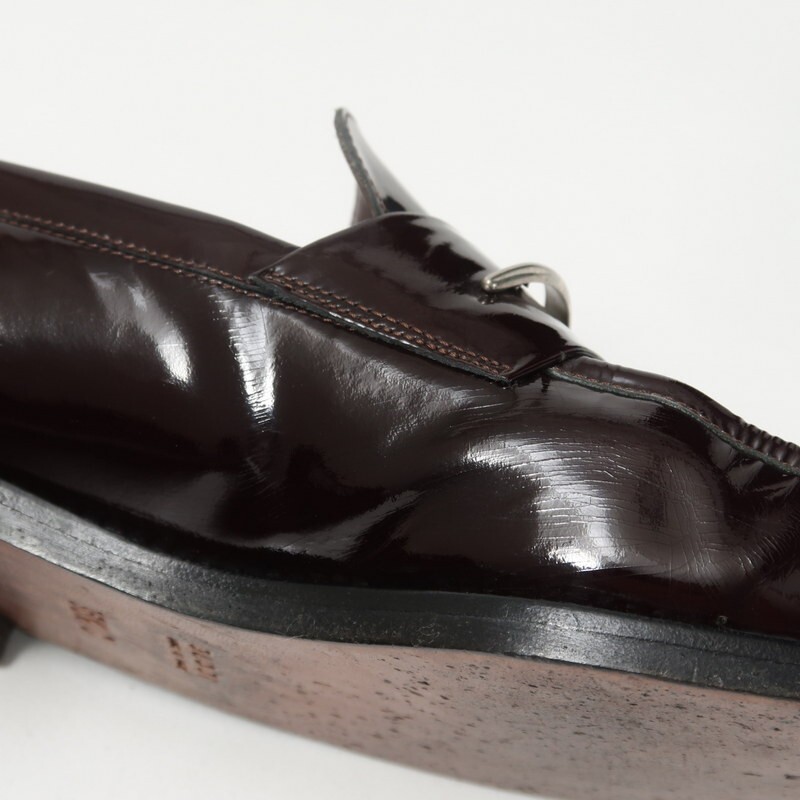 艶のある滑らかなパテントレザーを使用したヴィンテージのホースビットローファー