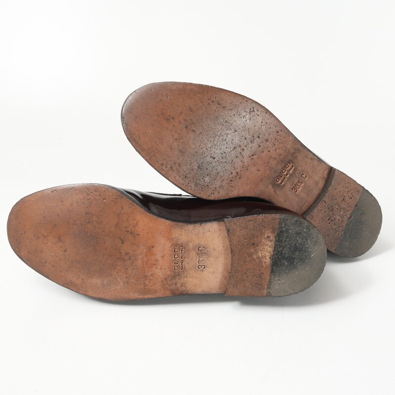MI2043*イタリア製 GUCCI グッチ Size 36.5C パテントレザー ホースビットローファー スリッポン モカシン 靴 ダークブラウン系