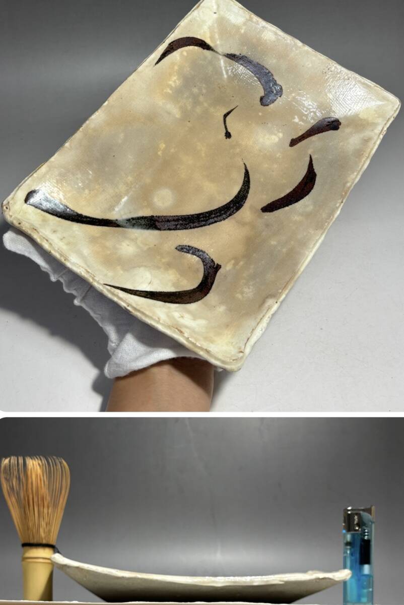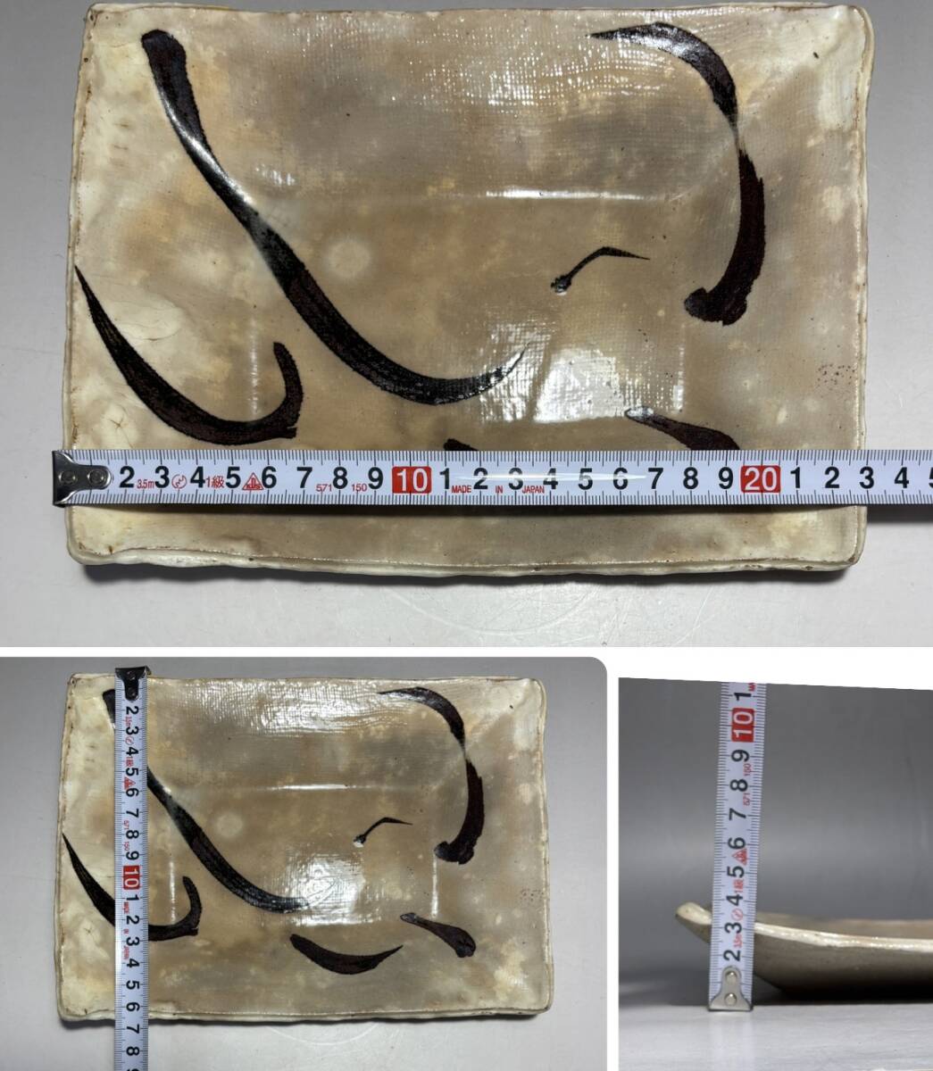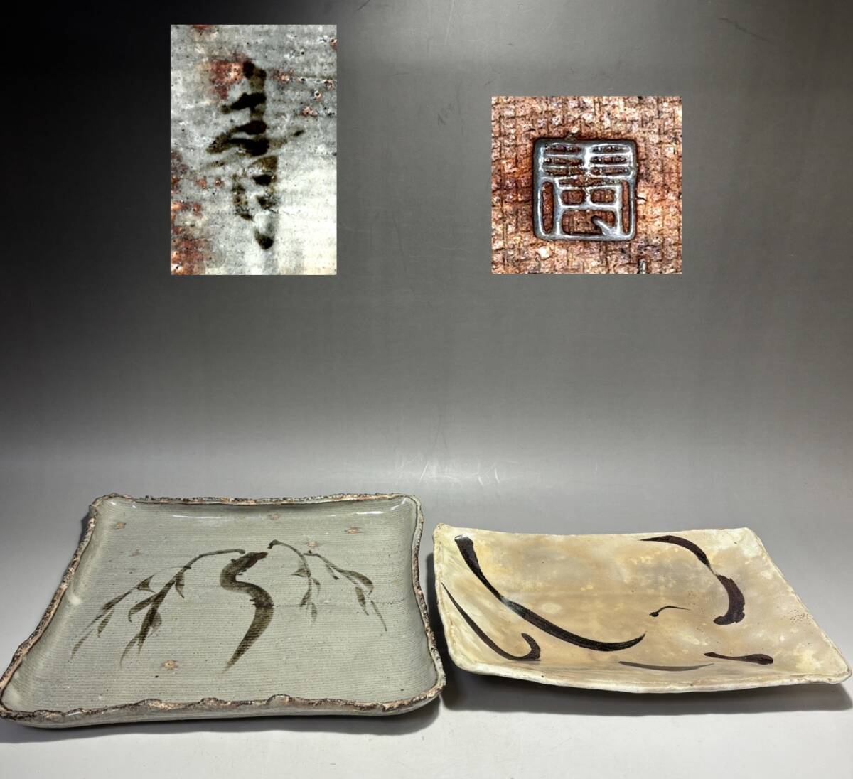 Product name: 勝尾青龍洞 陶印 青 民藝 河井寛次郎 初代青龍洞 信楽焼 陶芸家 登窯 窪窯(あながま) 四角 盛り皿 2枚 鉄絵 美品