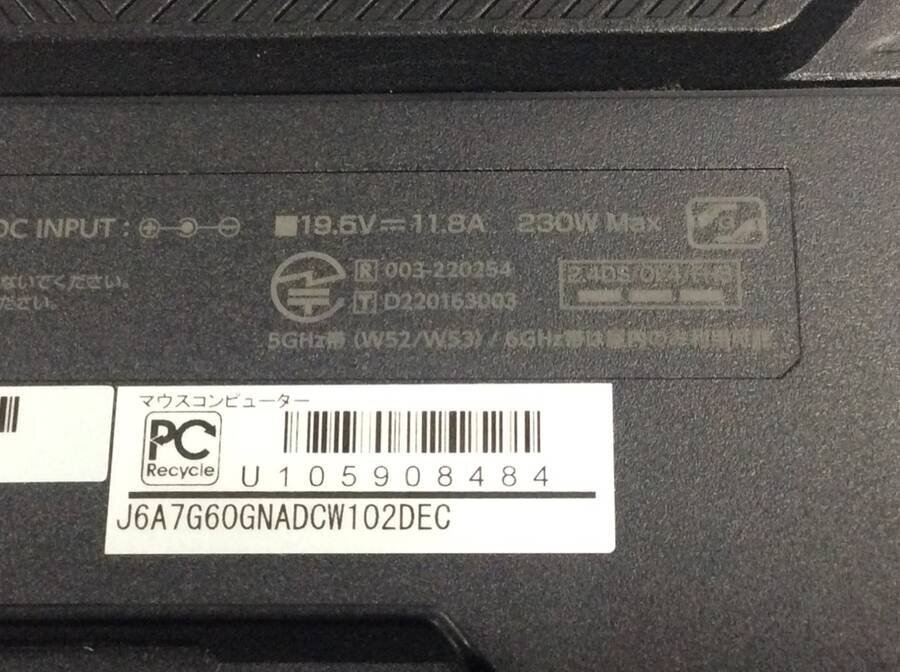 mouse computer J6A7G60GNADCW102DEC - AMD Ryzen 7 7840HS w / Radeon 780M Graphics 3.80GHz 32GB 256GB(SSD)■一部保証品