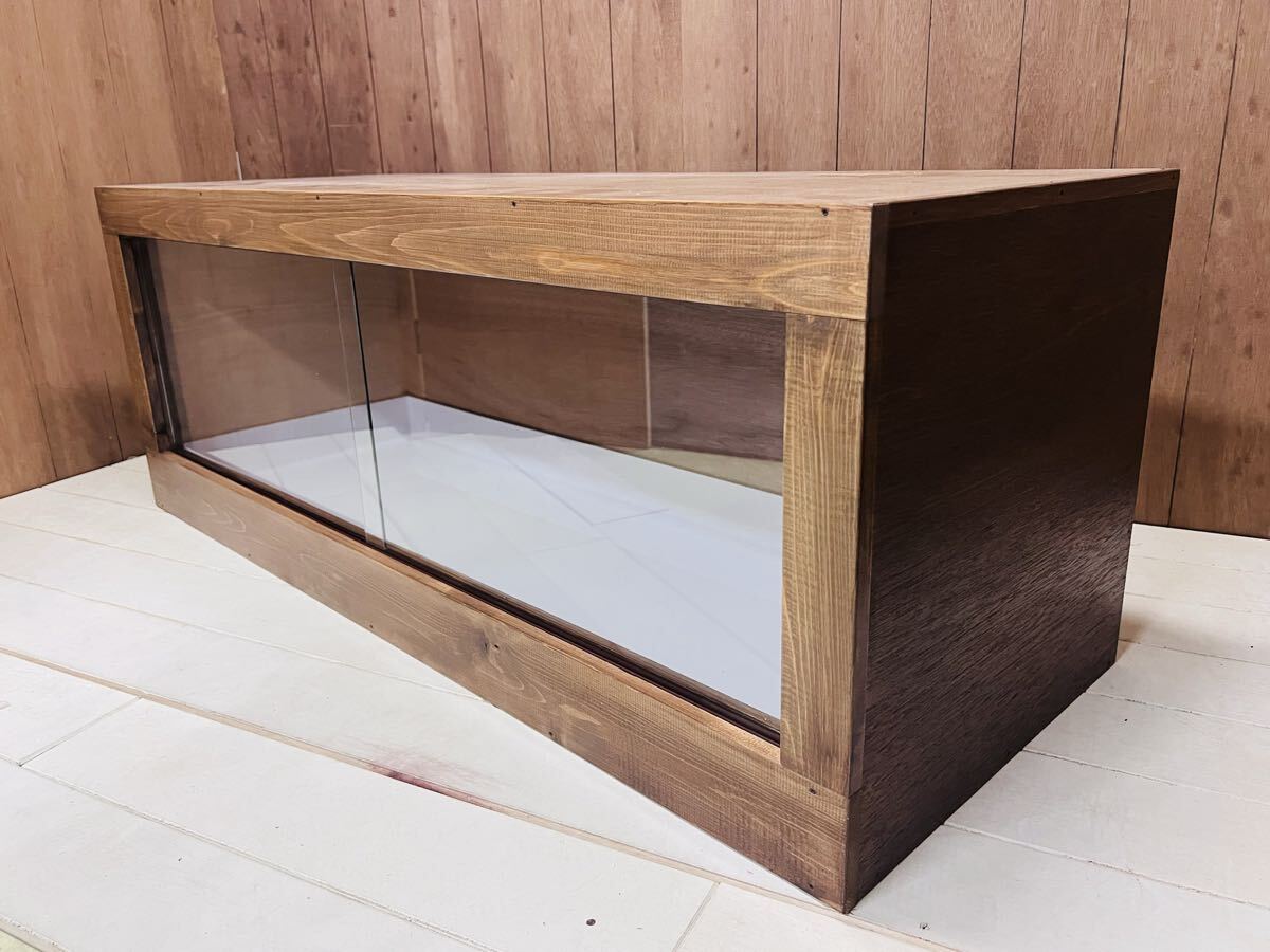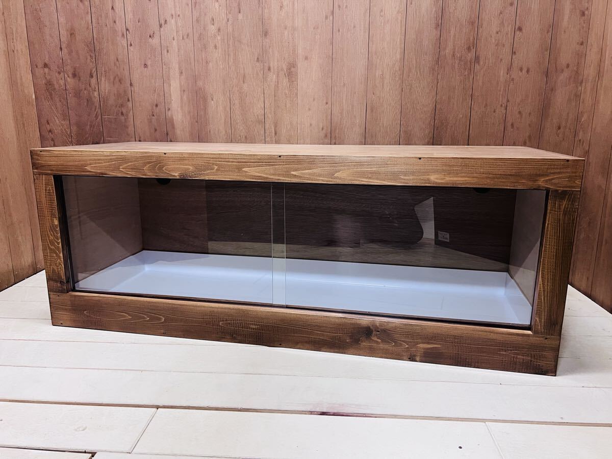 イベントでリクガメ、ゲッコー、フトアゴヒゲトカゲ、小動物を飼育するために木製ベースで木工職人さんに制作して頂いた特注商品になります。