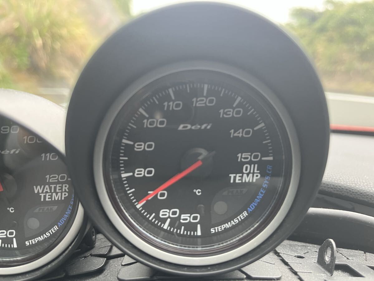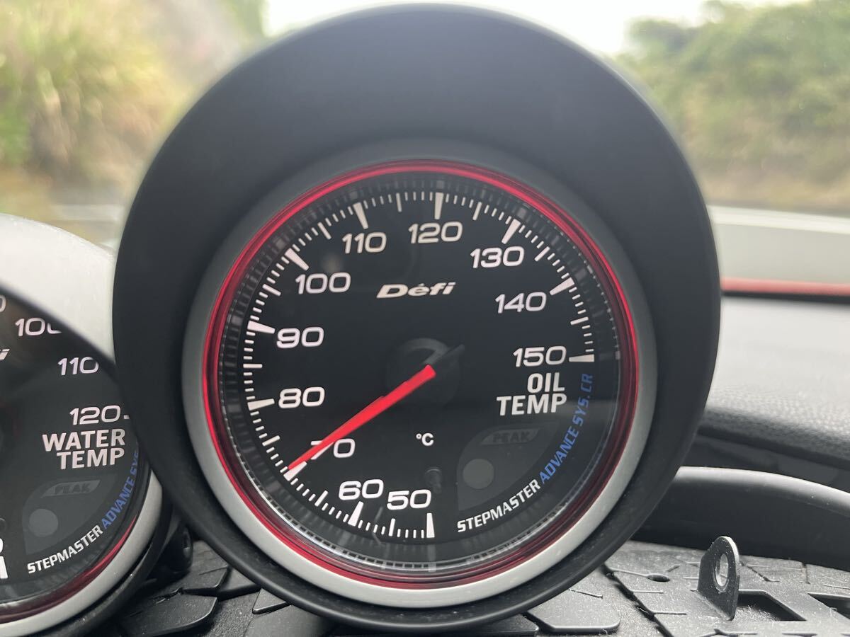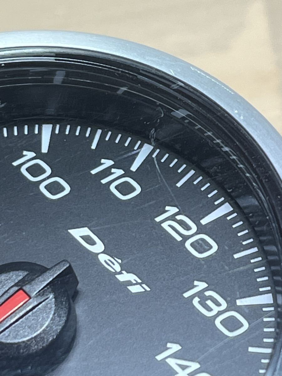 Defiの追加メーター、Advance CRの油温計を出品します。出品内容は、メーター本体・ベゼル(印付きリング)・メーターホルダー・取付台座・メーター接続ハーネス(25cm)1本です。車載状態の写真にあるメーターバイザーは付属しません。