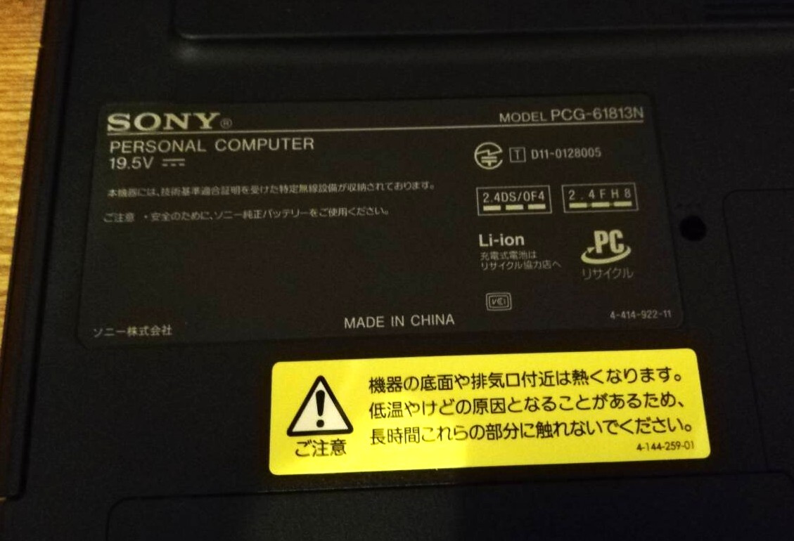 Product name: SONY VAIO ノートパソコン PCG-61813N 基本動作確認済