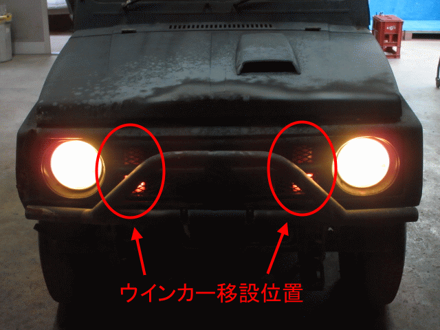 ■JA11Vジムニーに付いていた、社外のフロントウインカー移設キットです。