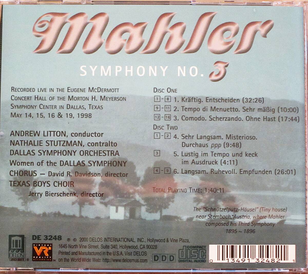 DELOSデロス◆マーラー:交響曲第3番◆アンドリュー・リットン指揮ダラス交響楽団・合唱団、シュトゥッツマン(S) 2枚組 輸入盤