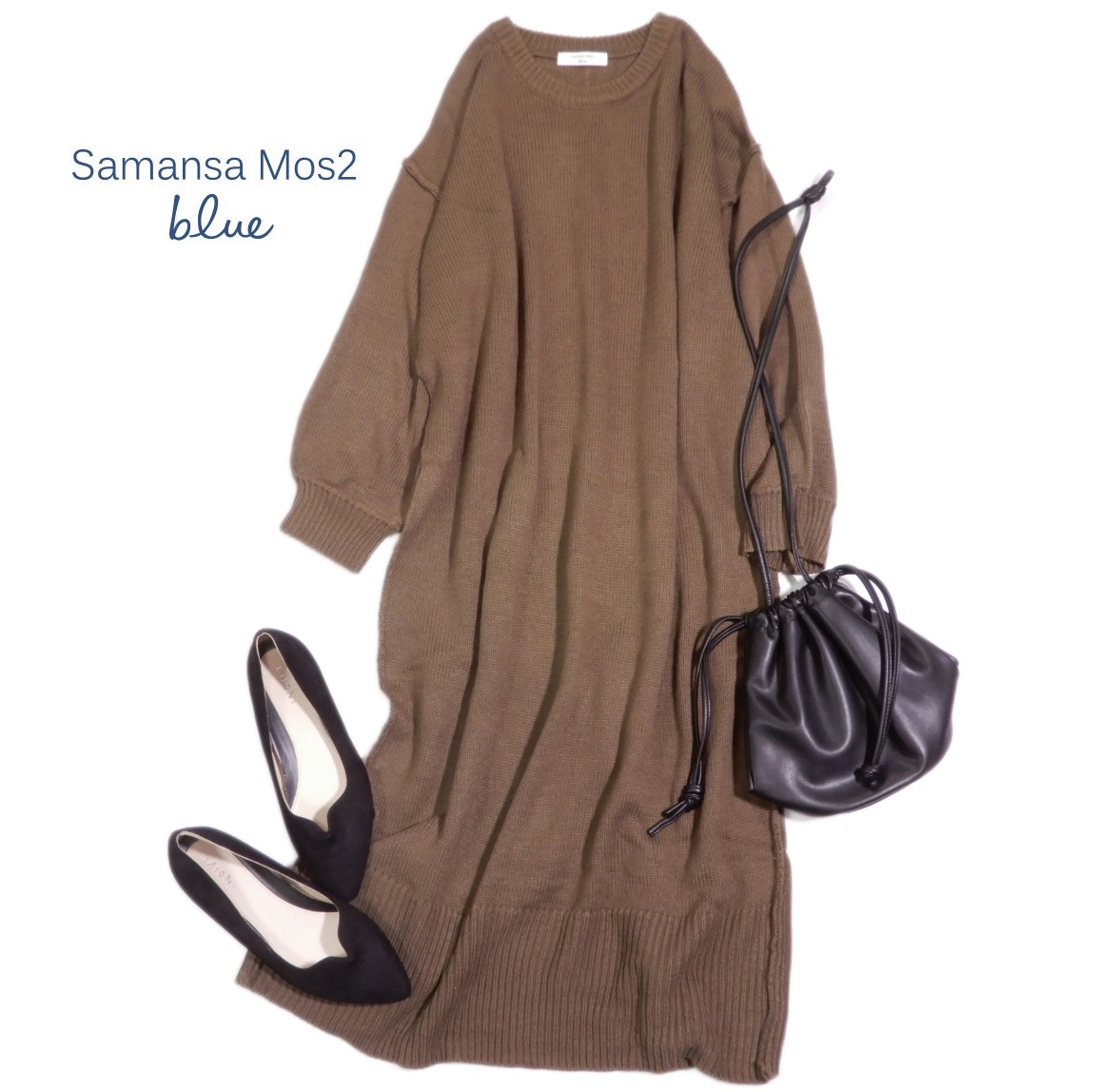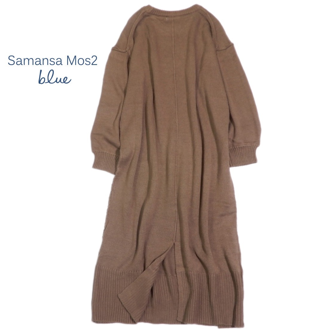 サマンサモスモス blue samansa mos2 大人可愛い☆ ふっくら袖 バックスリット ニット ワンピース F