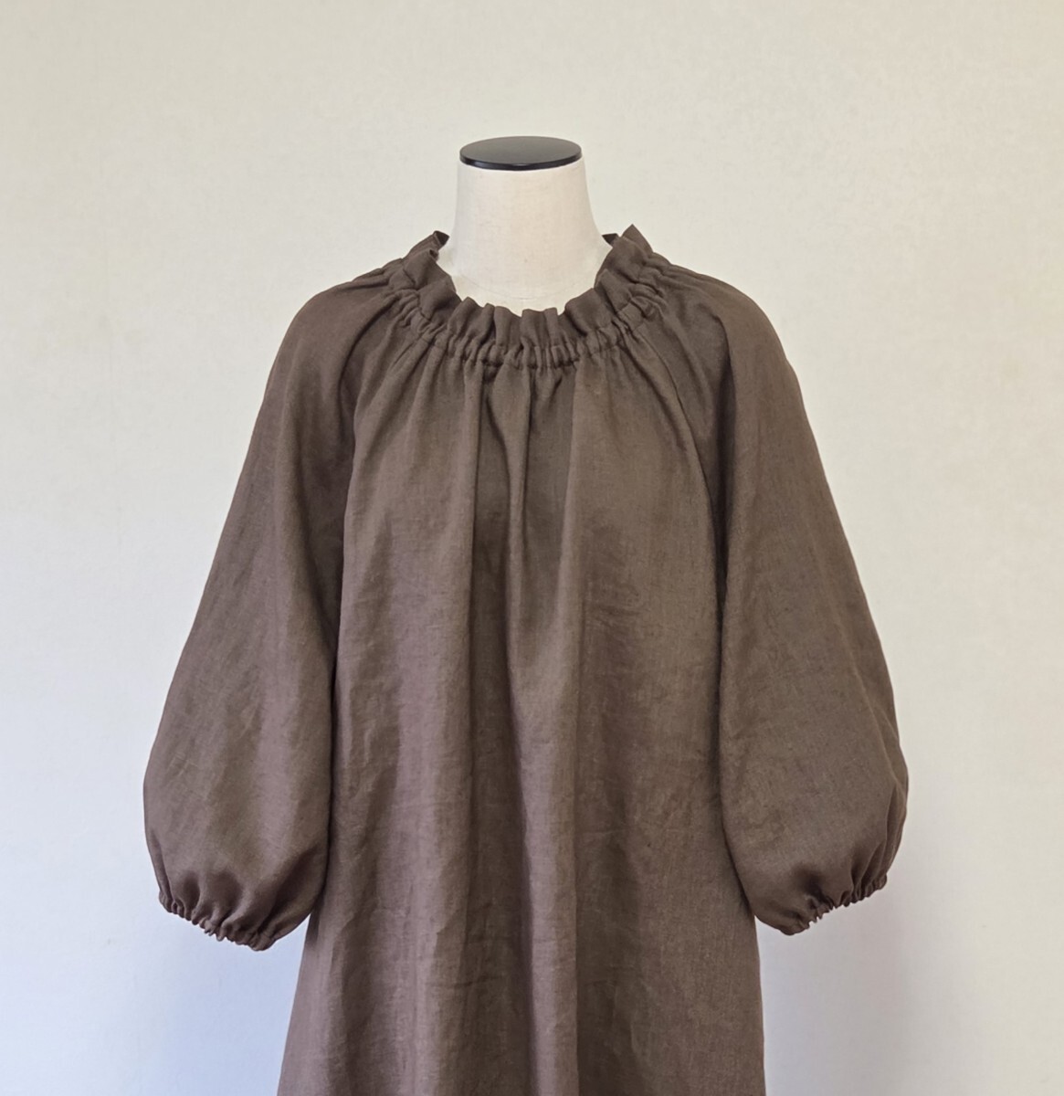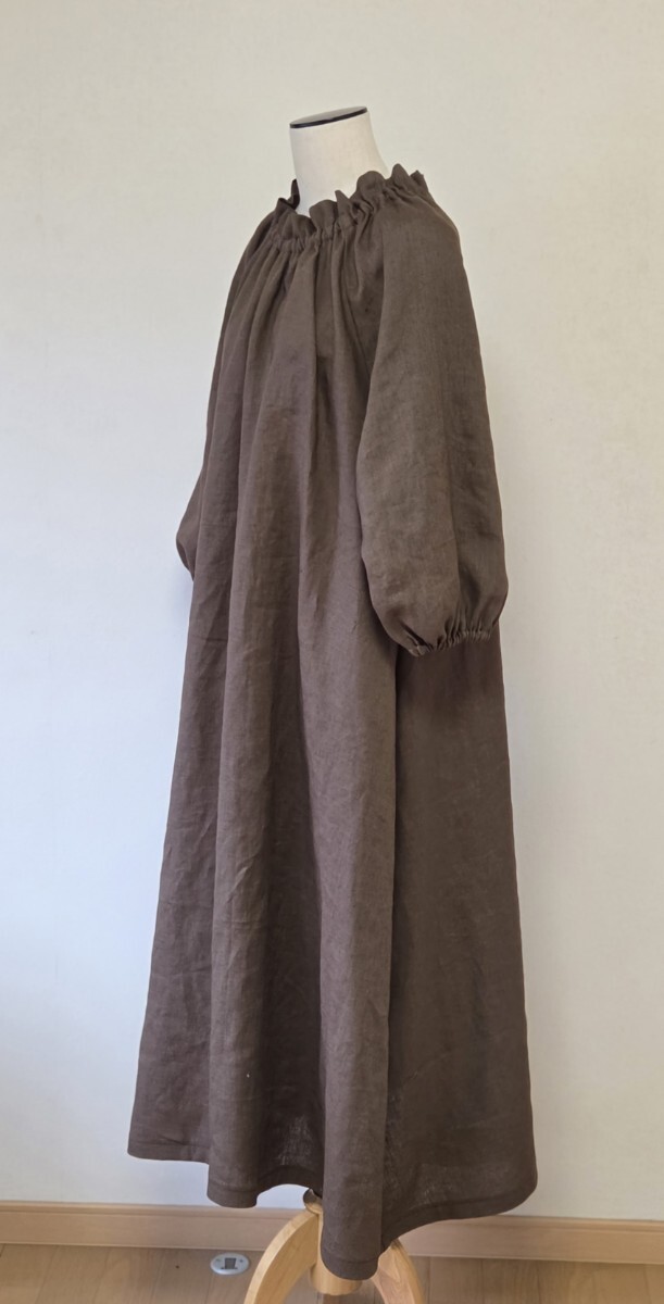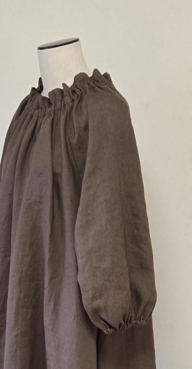 Product name: ★ハンドメイド★麻生地*微霜降り☆フリル襟のワンピース(こげ茶