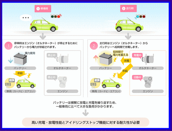 ■アイドリングストップ機能に適した高い充電・放電性能と耐久性能