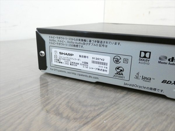 Product name: 1TB☆16年☆シャープ/SHARP/AQUOS☆HDD/BDレコーダー☆BD-NW1000☆リモコン付☆2番組同時録画☆3D対応機 管SA9216