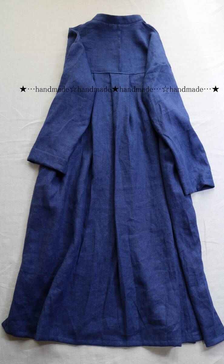 ♪hamdmade♪リネンロイヤルブルーバンドカラー羽織OP