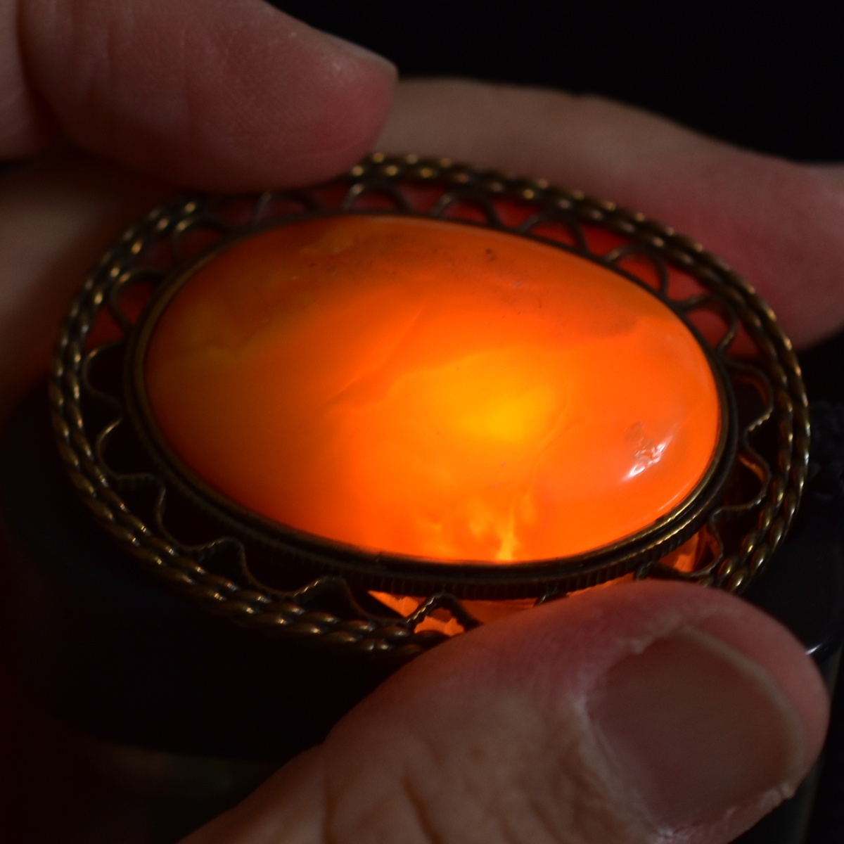 アンティーク ロイヤルアンバー/蜜蝋/琥珀/こはくのブローチ 透光性あり 本物保証 20世紀初頭ごろ オーストリアより
