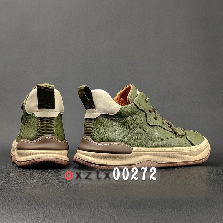 本革スニーカー メンズ フルグレインレザー ハイカットシューズ男性用 汎用性抜群 メンズカジュアルシューズ