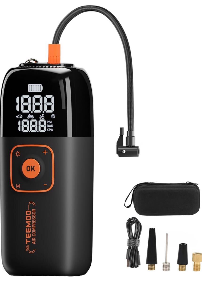 Product name: 自転車 空気入れ 電動空気入れ バイク 車 自動停止 最大圧力150PSI 6000mAh 容量 充電式 LEDライトTEEMOO