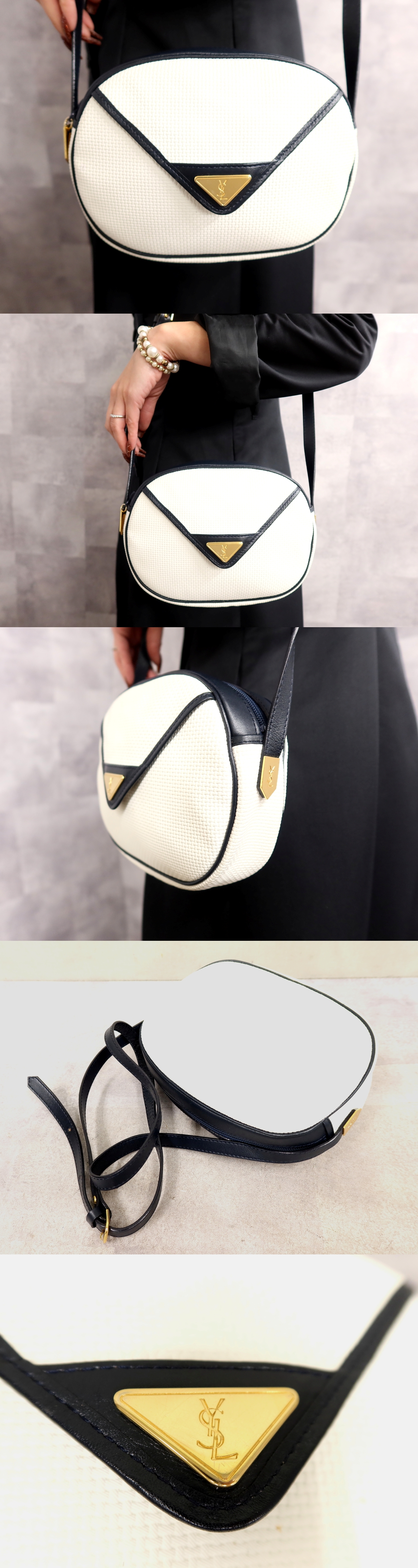 Store ●超美品●YSL Yves Saint-Laurent イヴ・サンローラン●PVC カーフ レザー 本革●ショルダー バッグ●ホワイト ネイビー●かばん●Js64155
