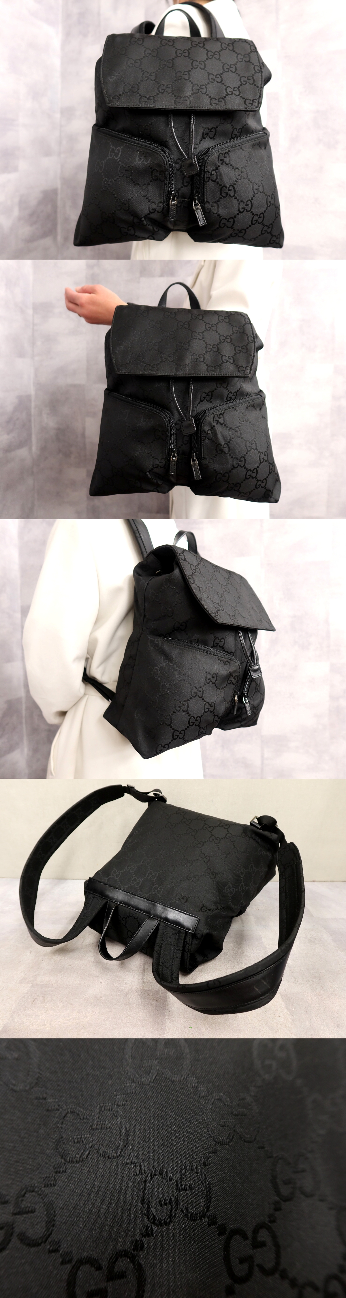 Product name: ●超美品●GUCCI グッチ●GGナイロン カーフ レザー 本革●リュックサック●黒●シルバー金具●イタリア製●B5 書類 収納 かばん●Js65489