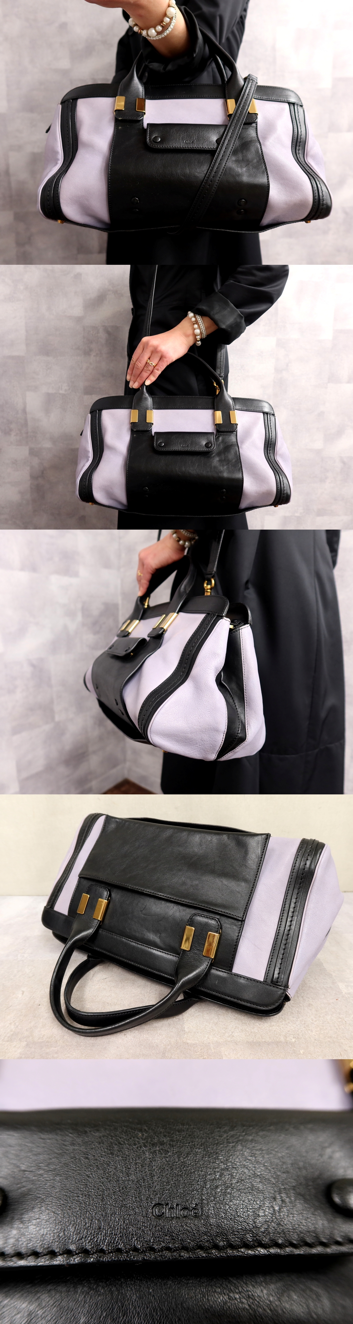 Product name: ●超美品●Chloe クロエ●アリス●バイカラー●カーフ レザー 本革●2way トート バッグ●ラベンダー 黒●ゴールド金具●B5 収納●Js65507