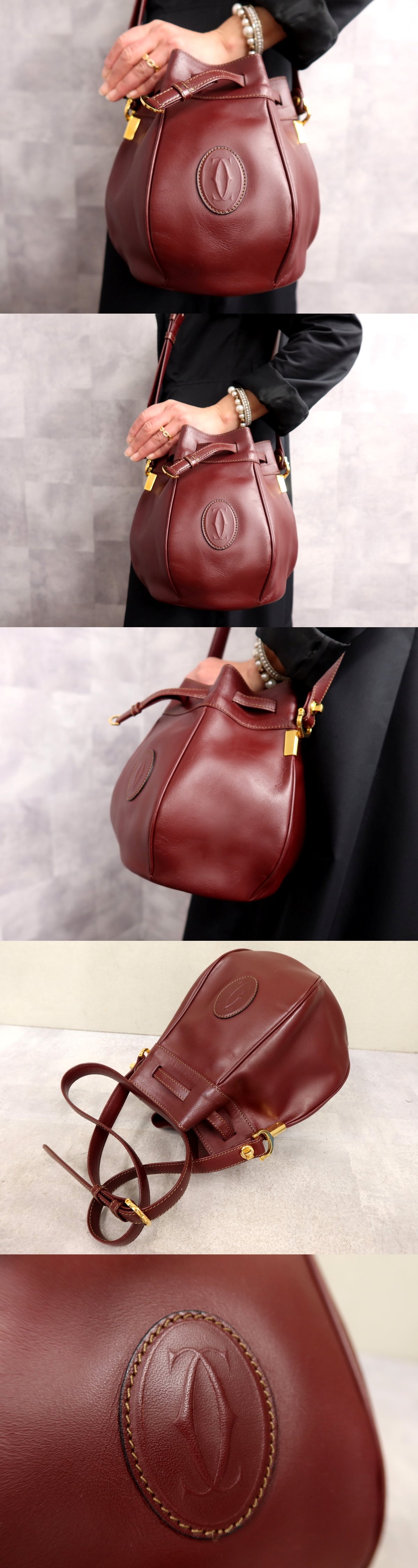 Product name: ●超美品●Cartier カルティエ●マスト●ロゴ型押し●カーフ レザー 本革●巾着 ショルダー バッグ●ボルドー●ゴールド金具●Js65518