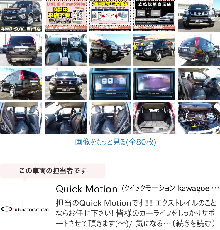 店頭商談中・売約済の場合もありますので、ご来店の際は事前にお問合せ頂き、該当車両の有無をご確認ください。