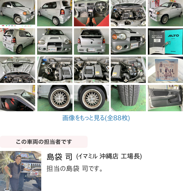 Store 【諸費用コミ】:沖縄県発 現状販売 業販 平成11年 スズキ アルトワークス RS/Z 銀 148,611km 車検R8年4/14 G-HA22S