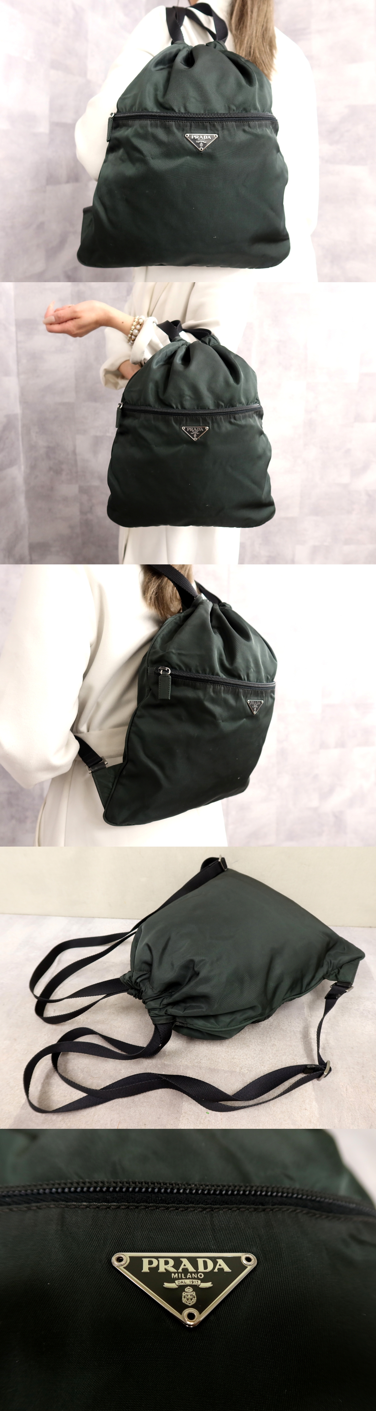 Product name: ●超美品●プラダ●三角ロゴプレート●ポコノ ナイロン カーフ レザー 本革●リュックサック ナップサック●グリーン 黒●SV金具●Js66392