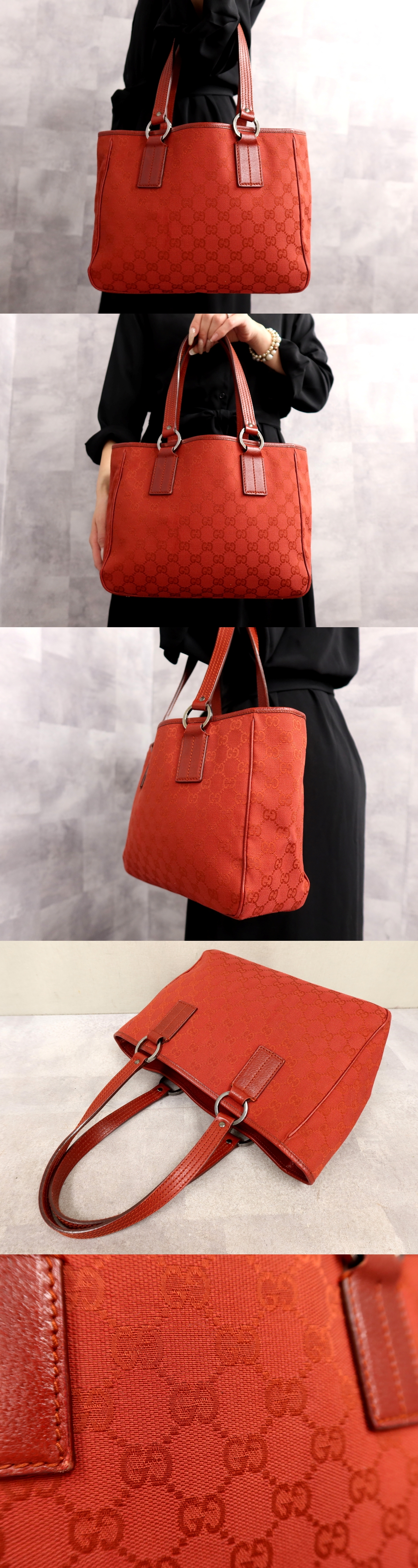 Product name: ●超美品●GUCCI グッチ●GGキャンバス カーフ レザー 本革●ハンド トート バッグ●赤●シルバー金具●イタリア製●B5 収納 書類●Js66765