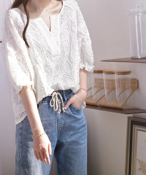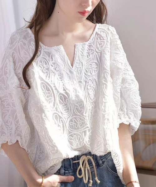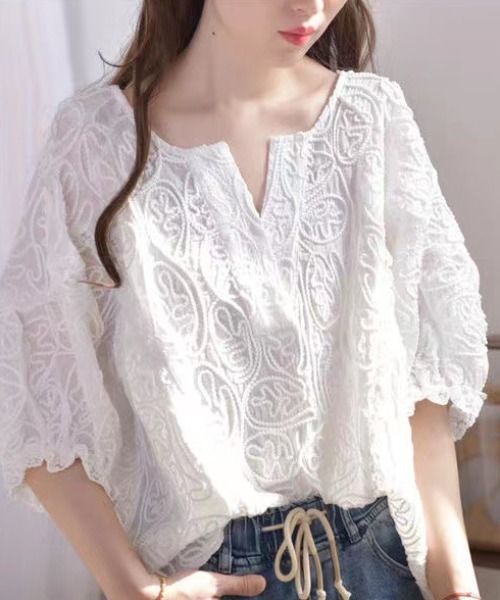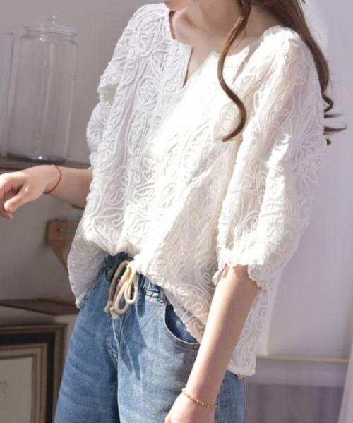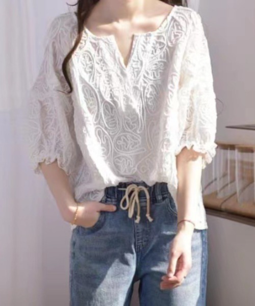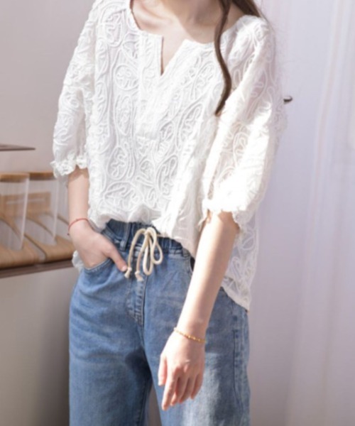 キーワード:ブラウス シャツ レディース 半袖 無地 夏 春