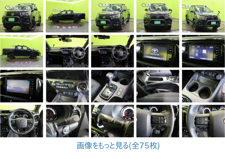 「格好のアウトドア仲間が求めるピックアップトラックが入荷しました!トヨタのハイラックス、令和1年式、走行距離わずか25268km!人気のブラックカラーで高級感もあります。4WDで悪路も堂々と走破!安心の保証付きで、万が一の際にも安心して乗れます。ABSや多くの盗難防止装置など最新の安全装置が搭載されており、運転も安全です。更に、大型の荷物も積める★ルーフキャリア搭載!アウトドアファン必見です。クルーズコントロールもついていて、高速道路をドライブするのが快適になります。どうぞ一度お気軽にご覧ください。」