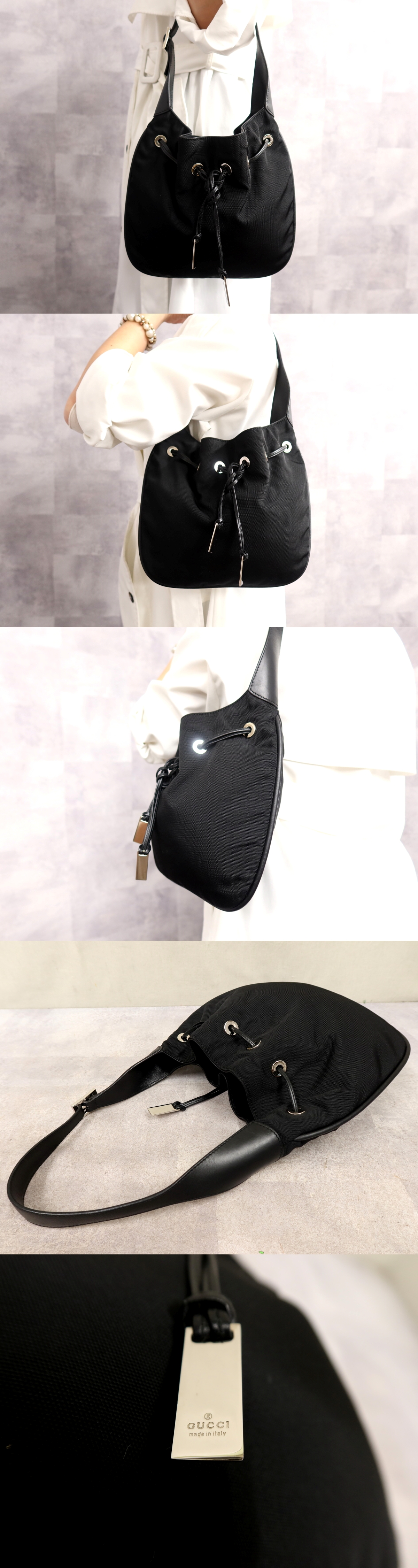 Product name: ●超美品●GUCCI グッチ●ロゴプレート●ナイロン カーフ レザー 本革●ショルダー バッグ●黒●シルバー金具●イタリア製●Js67179