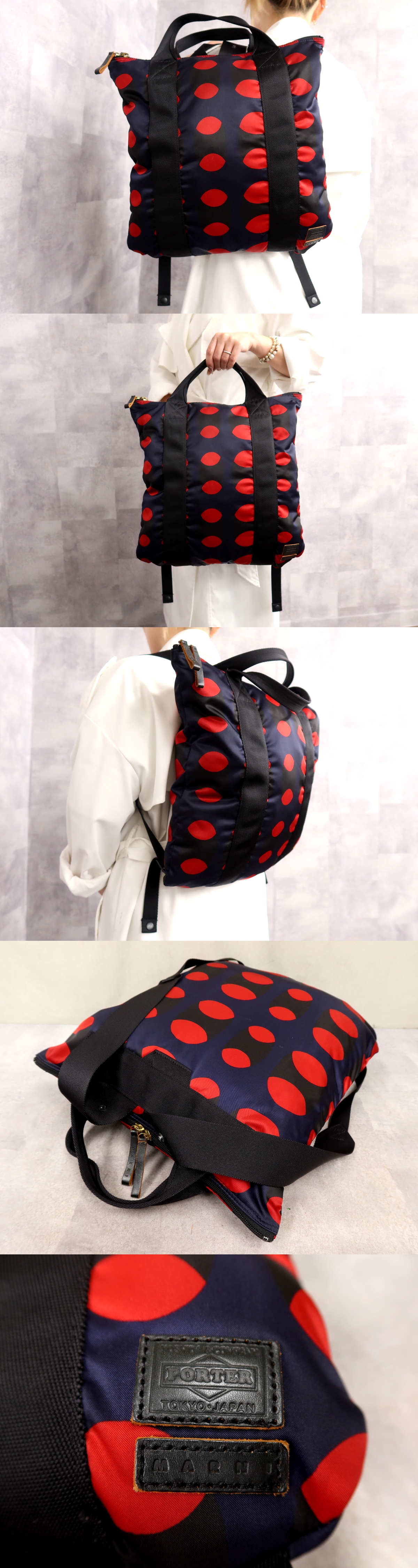 Product name: ●超美品●MARNI×PORTER マルニ×ポーター●コラボ●ドット●ナイロン●2way トート バッグ●ネイビー 赤●G金具●A4 書類 収納●Js67340