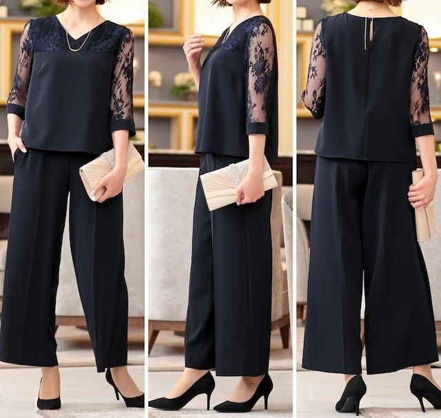 Product name: 新品☆LL紺系♪ワイドパンツドレス♪セットアップ♪上品レース☆p622