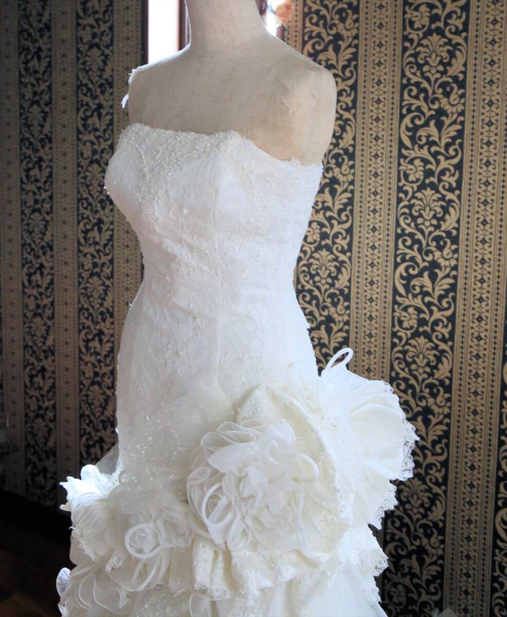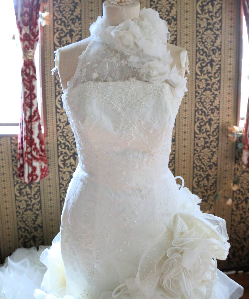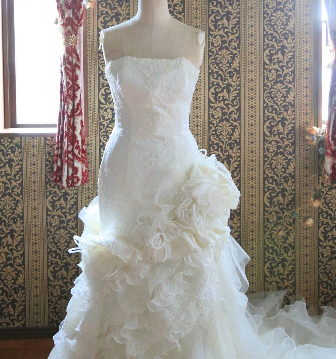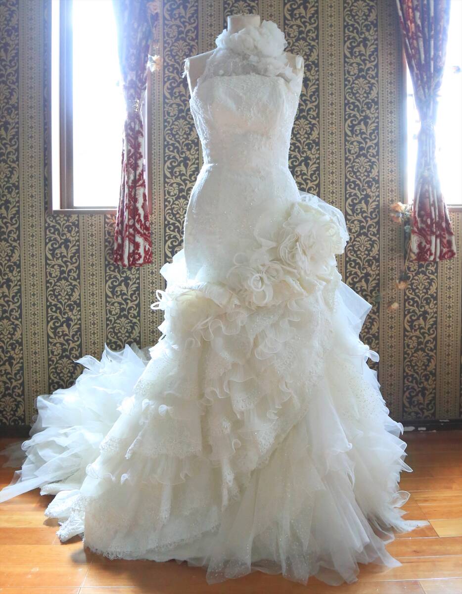 スタジオにて手入れしながら使用・保管している物で、通常使用に問題ありませんが、ドレスは大量の生地などが使用されている繊細な商品ですので、多少の糸切れ小傷など、じっくり探せば難があるかもしれません