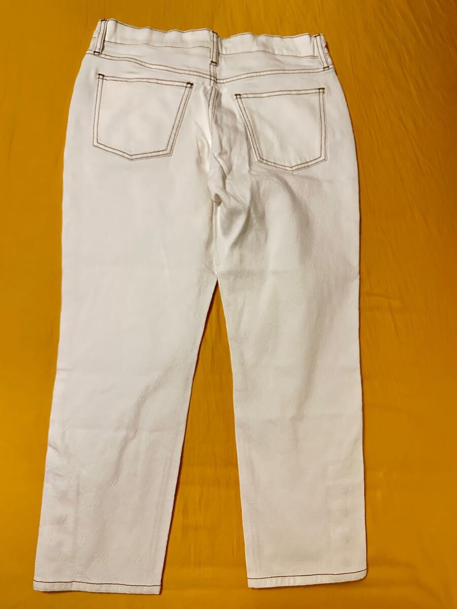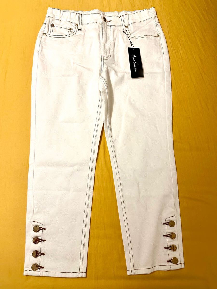 Product name: アンコキーヌ モノグラム ジャガード スリムパンツ サイズL ホワイト 60cm QVC Anne Coquine 金ボタン コキラー