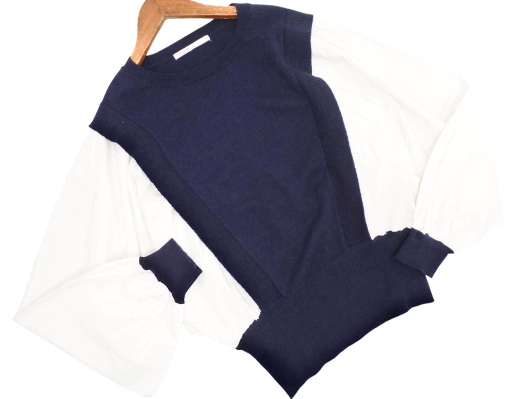 Product name: KBF ケービーエフ アーバンリサーチ フェイクレイヤード ニット セーター sizeONE/紺x白 ◇■ ☆ eka8 レディース