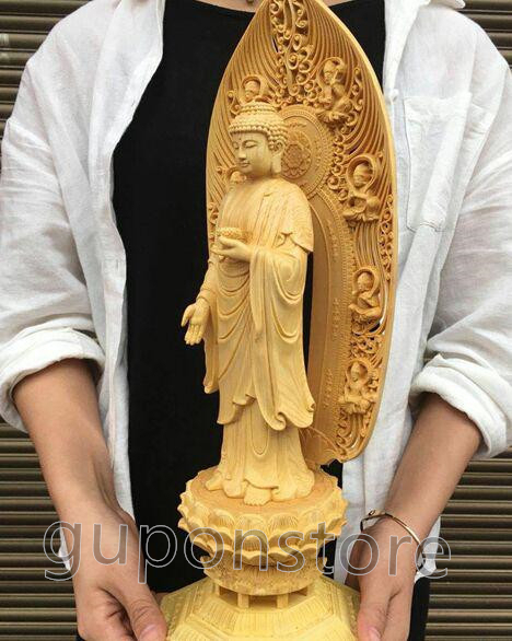 Product name: 大型高43cm 阿弥陀如来像 黄楊木 仏像 木彫 置物